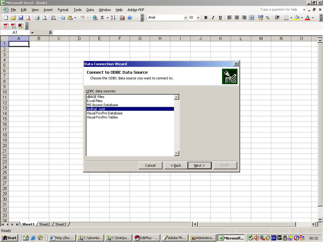- Choose the database and table you want, you will then be asked to save your connection in a .odc file. Do so.