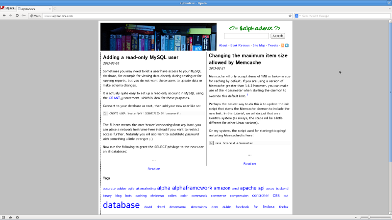 I use Firefox as my primary web browser, however I like to have at least one other browser installed as a secondary browser, which can be useful testing. Recently I found that I was having stability problems with Google Chrome on my Fedora 16 work station (in particular with Flash), so decided it would be a good time to take another look at Opera as a replacement.