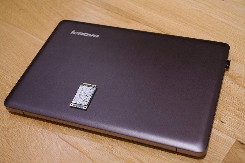 This is what the device looks like on top of the Lenovo U410 IdeaPad. This laptop is about to get a lot faster.