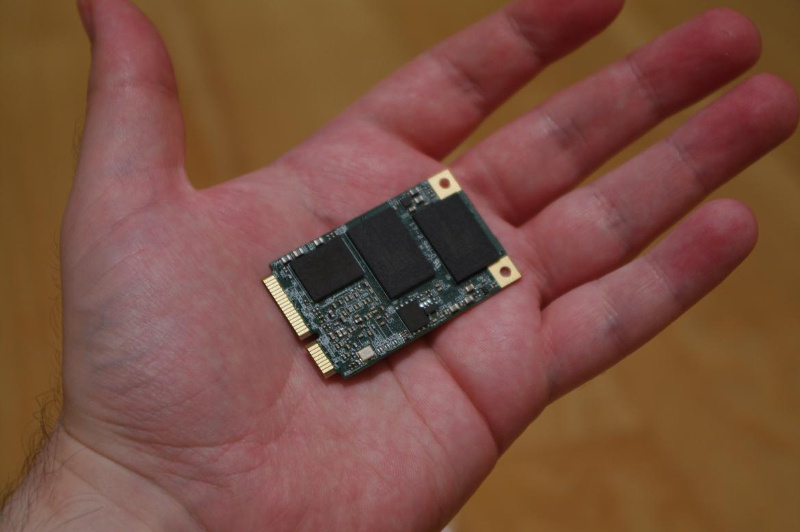 This is what the device looks like outside of the packaging. Hard to believe that I am holding a 256GD hard drive that small in my hand. MSATA and SDD are wonderful personal computing technologies.
