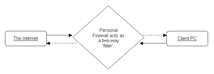 From the above diagram, it is possible to see how a firewall protects your system by monitoring incoming traffic from the Internet, while at the same time watching for un-authorised software connections from your computer to the Internet.