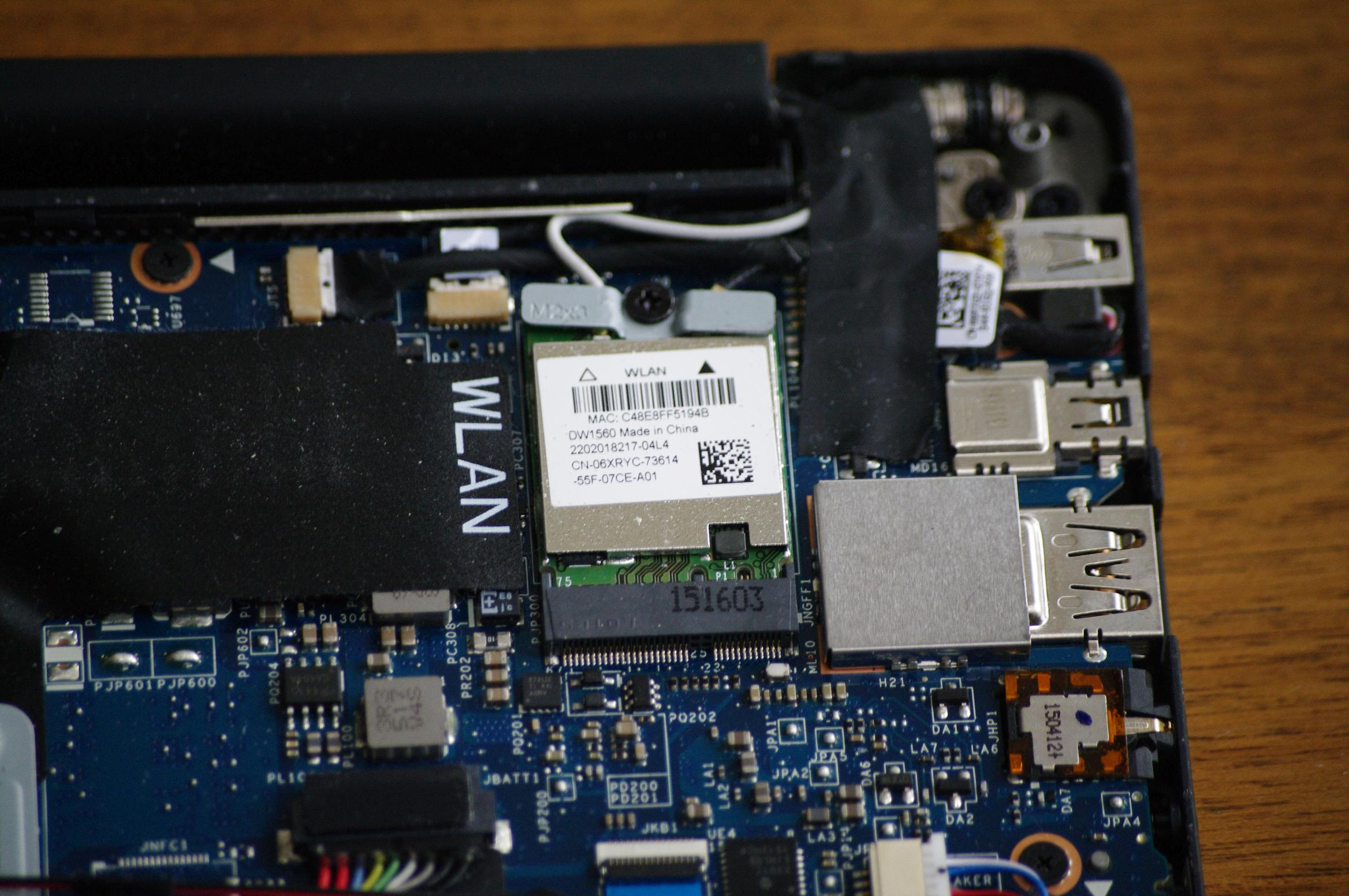 In the top-right corner you can see where the wireless adapter is located. If we look closer at that: